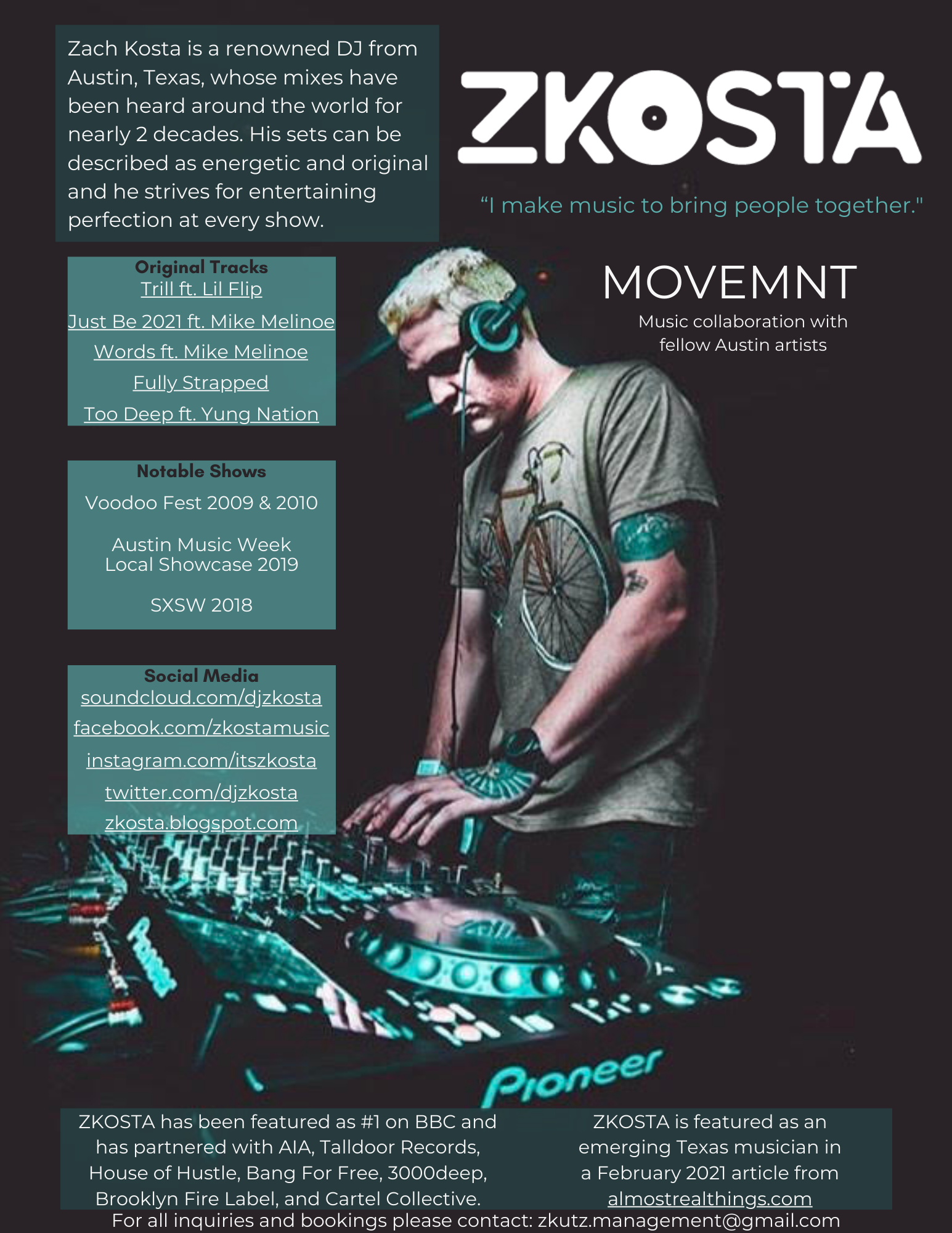 Client: DJ ZKosta Event media created for a PRIDE event for DJ ZKosta A sampling of content created for local DJ ZKosta and his music collaborative EPK (Electronic Press Kit) created for DJ ZKosta Event Media created for DJ ZKosta Share this: Click to share on X (Opens in new window) X Click to share on Facebook (Opens in new window) Facebook Like Loading...